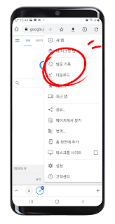 먼저 홈 화면 우측 상단의 메뉴 버튼인 점을 3개 클릭하여 표시되는 메뉴 중에서 ‘방문 기록’을 선택하십시오.