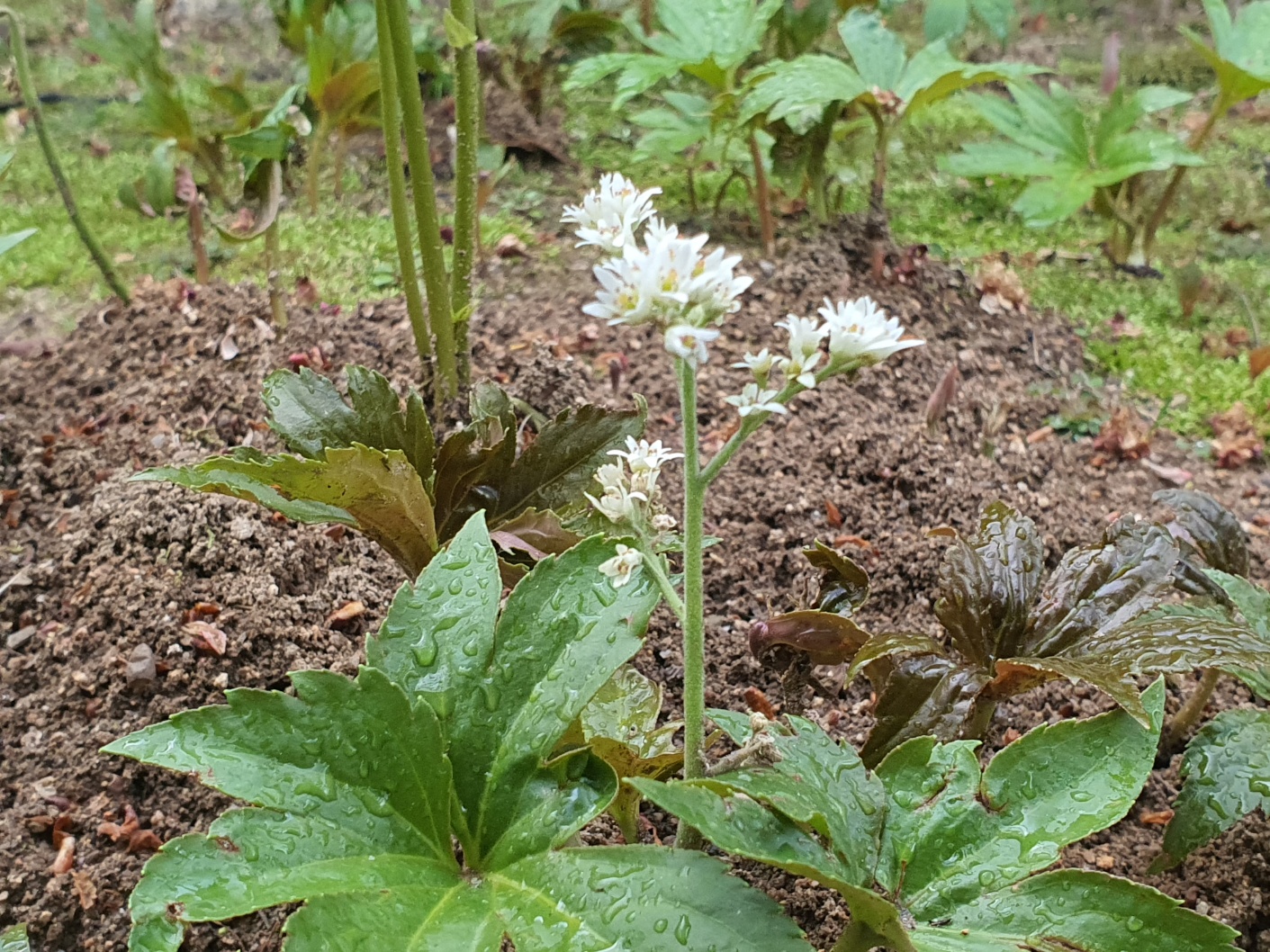 생명력, 희망, 미덕의 꽃말이 있습니다. 바위 틈에서 자라는 모습을 보면 강인한 생명력을 느낄 수 있습니다. 꽃은 흰색이고 옅은 분홍색입니다. 봄에는 흰 꽃이 피고 여름에는 크고 넓은 녹색 잎을 많이 보여줍니다. 가을에는 단풍처럼 예쁜 색을 띠고 겨울에는 시들어 이듬해 봄에 새싹을 낸다.